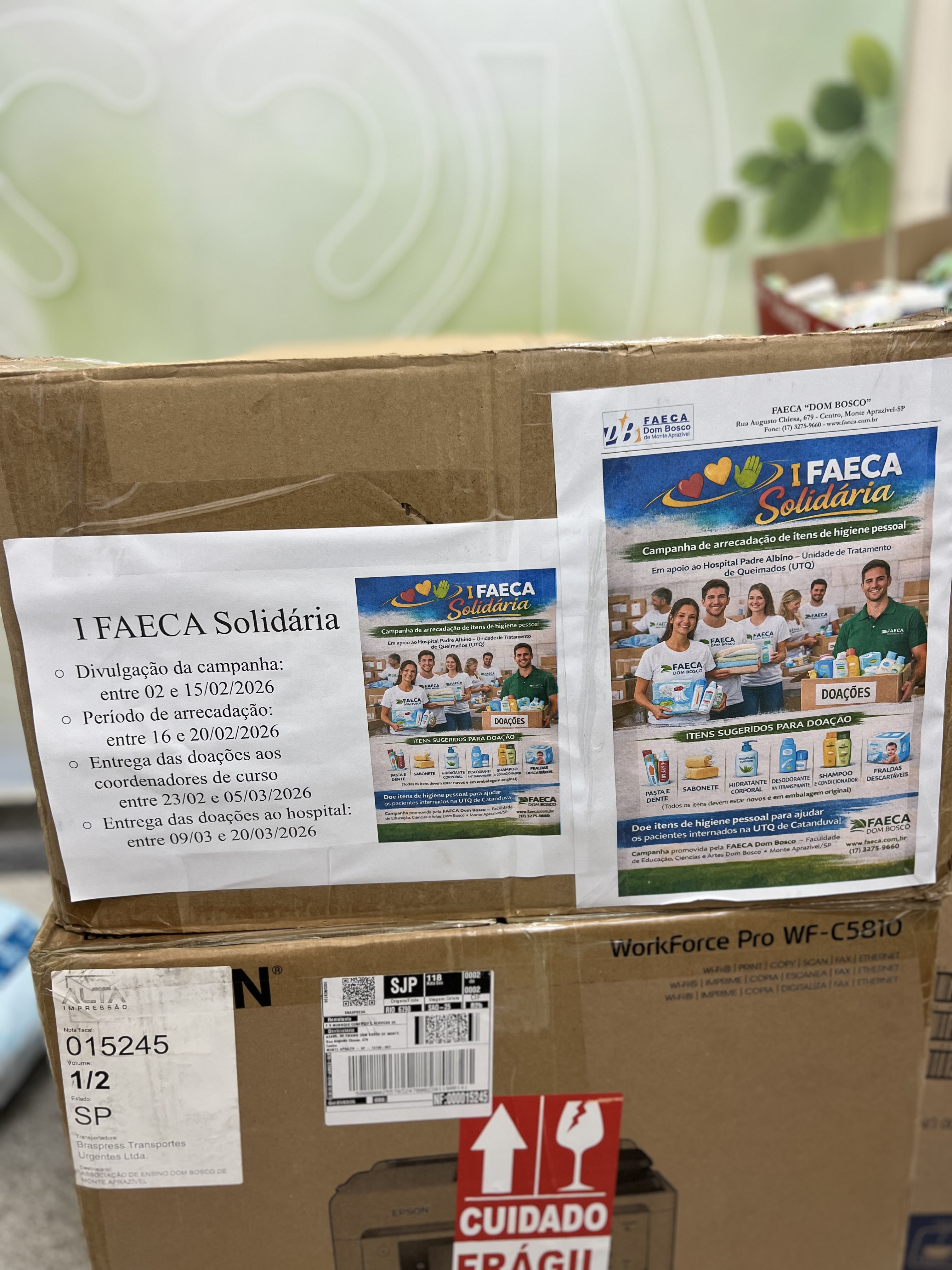 Uma iniciativa que começou de forma simples dentro da sala de aula se transformou em gesto amplo de cuidado. A Faculdade e Colégio Dom Bosco de Monte Aprazível (FAECA Dom Bosco) doou produtos de higiene pessoal arrecadados por meio da ação social FAECA Solidária, destinada às unidades da Fundação Padre Albino.